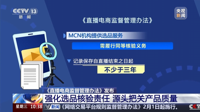 针对选品把关不严、广告定性模糊、商家失联等行业痛点,《直播电商监督管理办法》明确直播间运营者和MCN机构选品责任,细化商业广告认定情形,从源头规范直播电商经营行为。